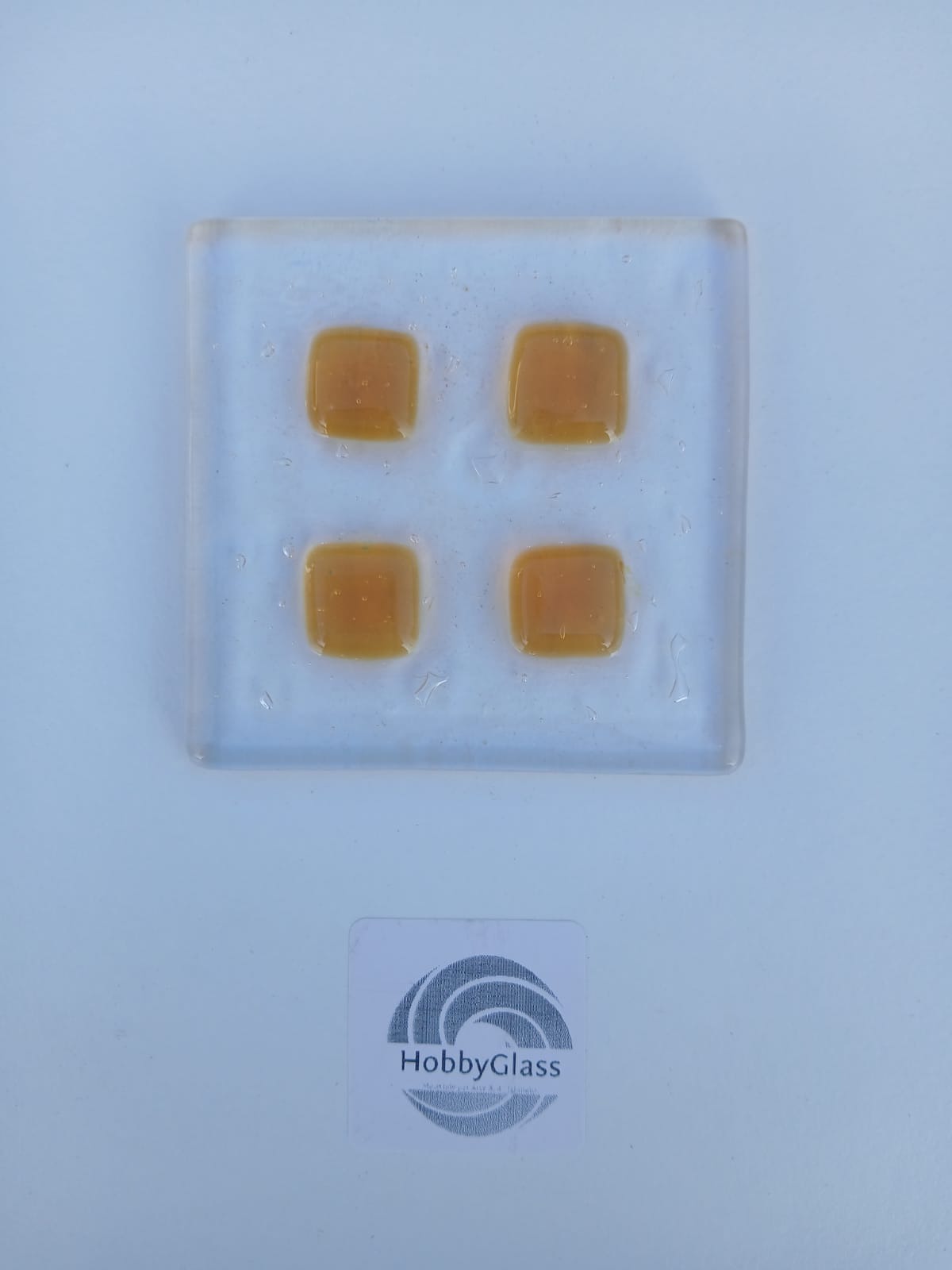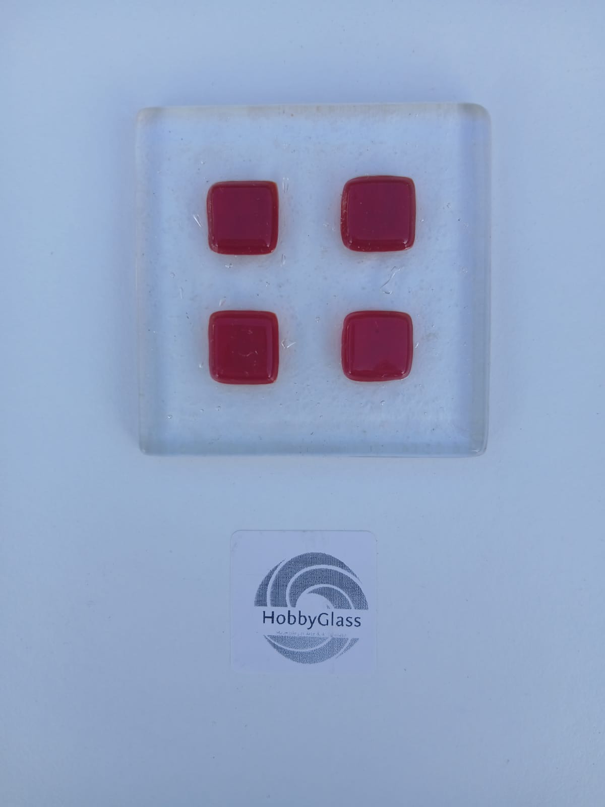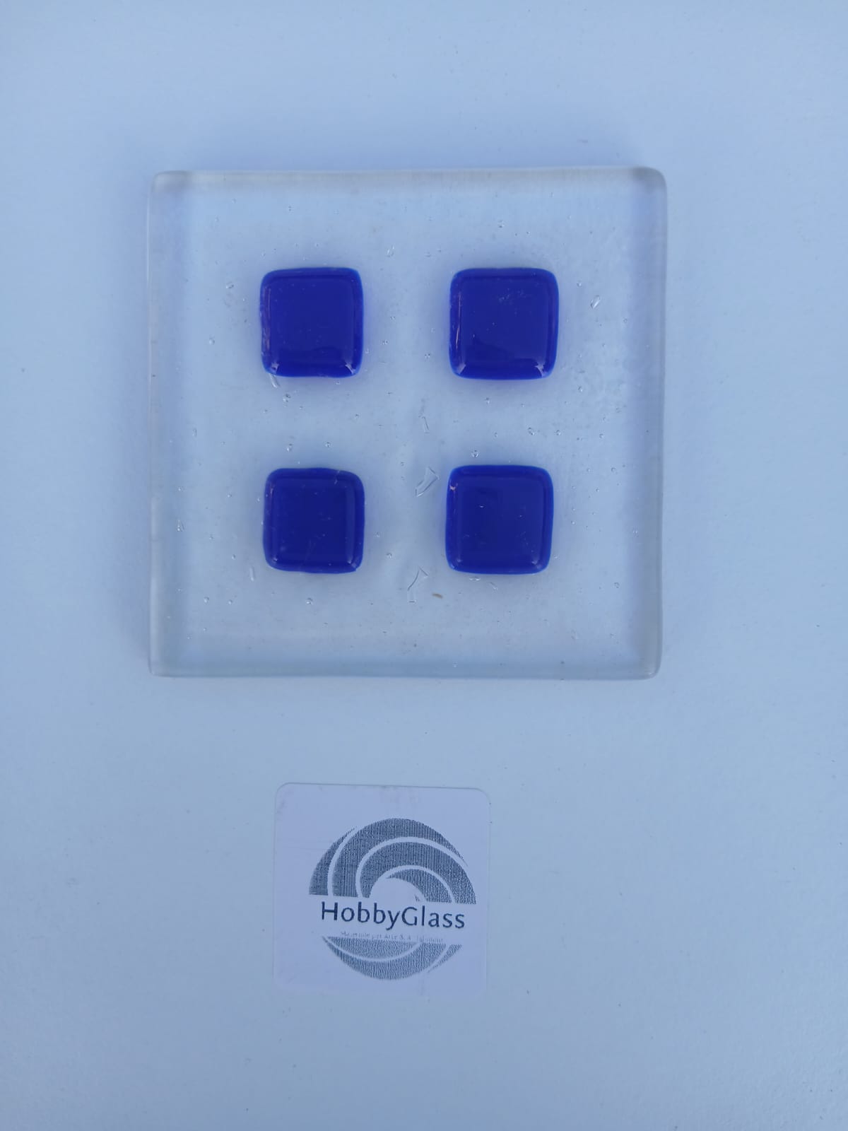Formelle in vetrofusione serie QUADRA 2 dimensioni 60x60mm su base trasparente, con 4 inserti colorati 10x10mm