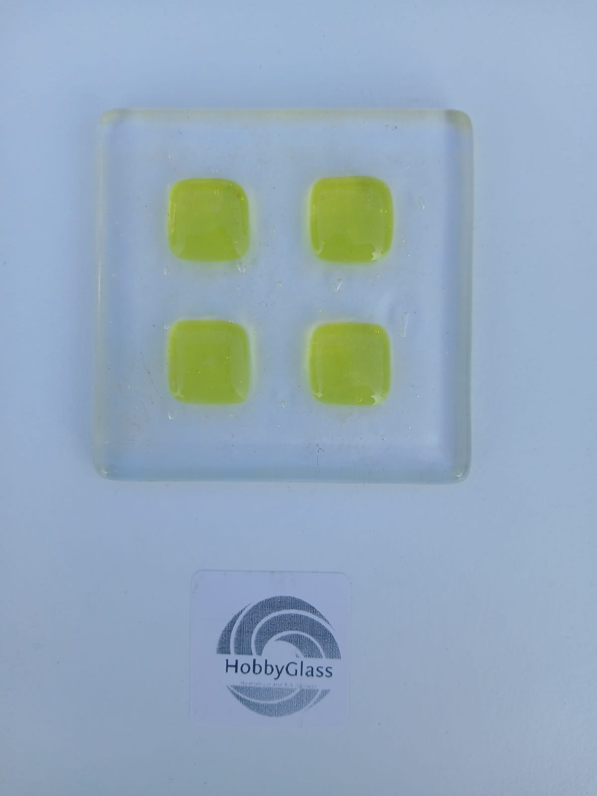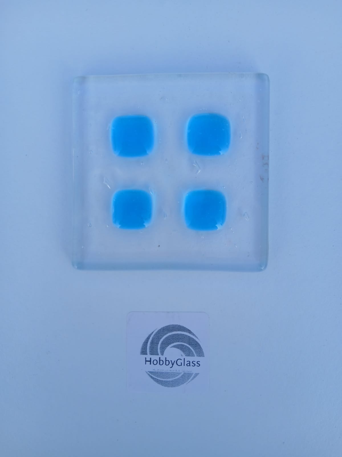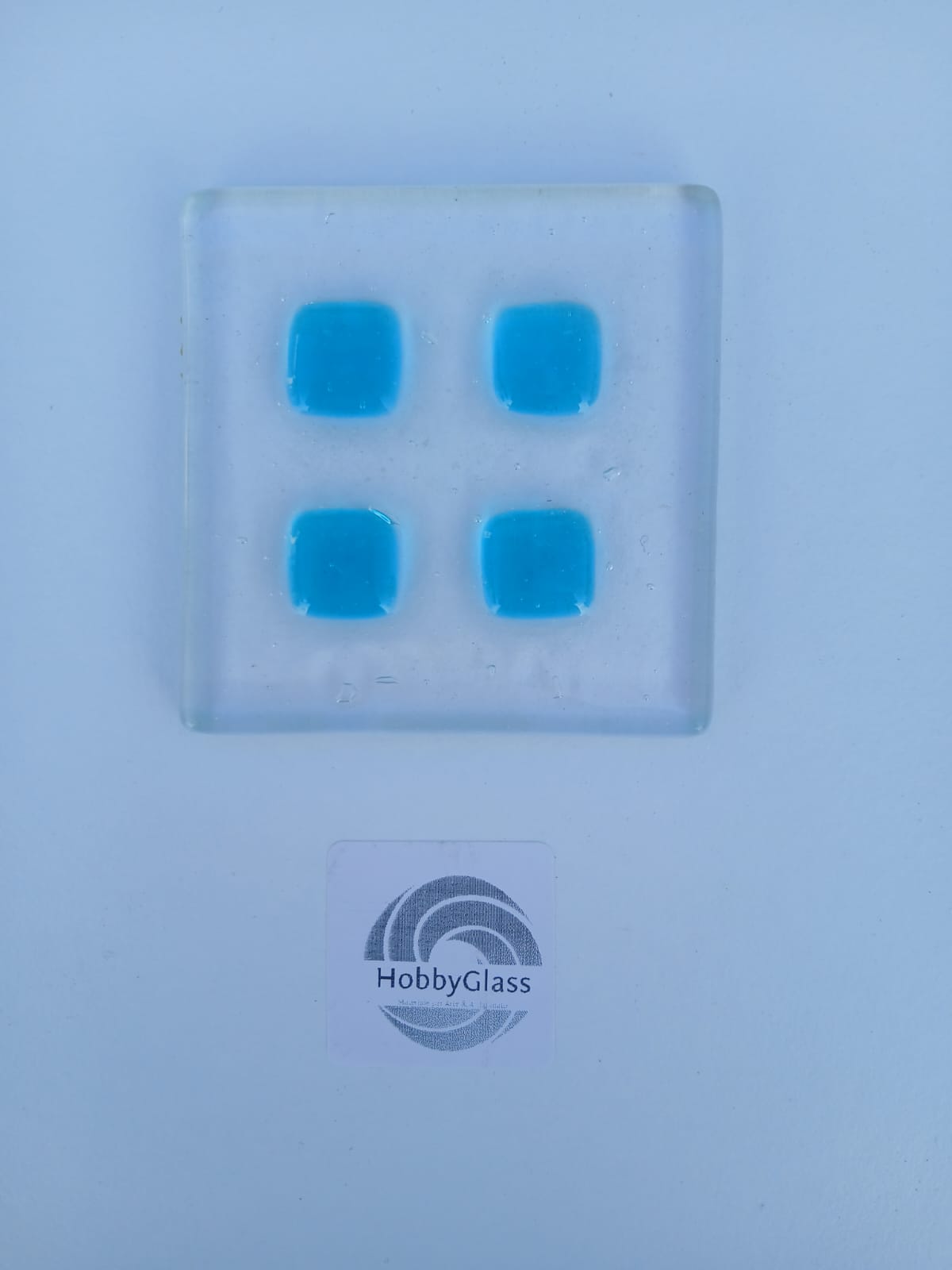 Formelle in vetrofusione serie QUADRA 2 dimensioni 60x60mm su base trasparente, con 4 inserti colorati 10x10mm